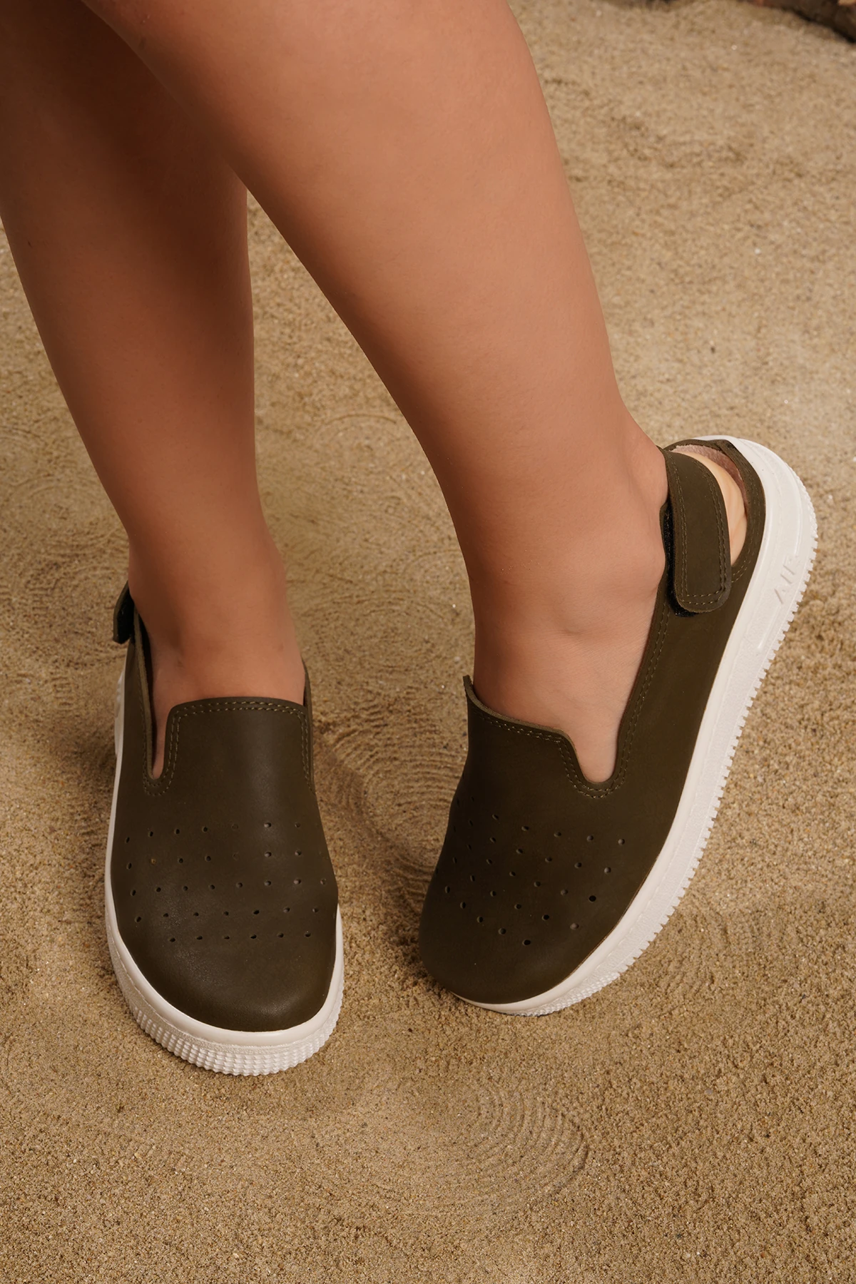 Koyu yeşil tonlarıyla dikkat çeken bu sandalet, DOGİYE markasının yüksek kalite anlayışını yansıtmaktadır. İç malzemesi süet kumaş ile kaplanmış olan bu model, ayak konforunu ön planda tutarak uzun süreli kullanımlarda dahi rahatlık sağlar. Dış yüzeyde kullanılan yüksek kaliteli suni deri, estetik bir görünüm sunarken, antibakteriyel özellikleri sayesinde hijyenik bir deneyim sunar.