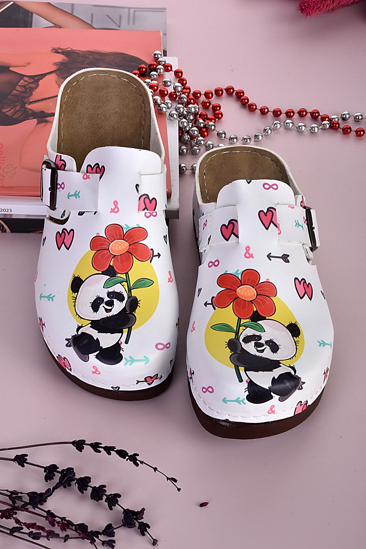 3026 Çiçek Tutan Panda Desenli Anatomik Terlik