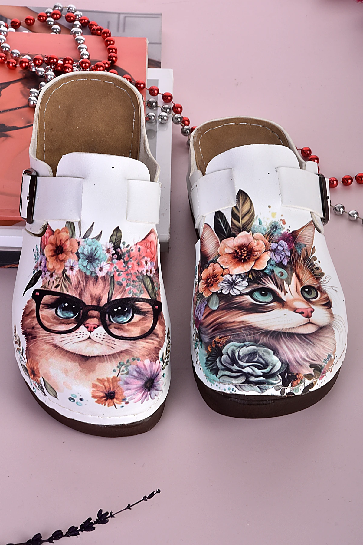 3051 Tatlı Kedi Desenli Anatomik Terlik