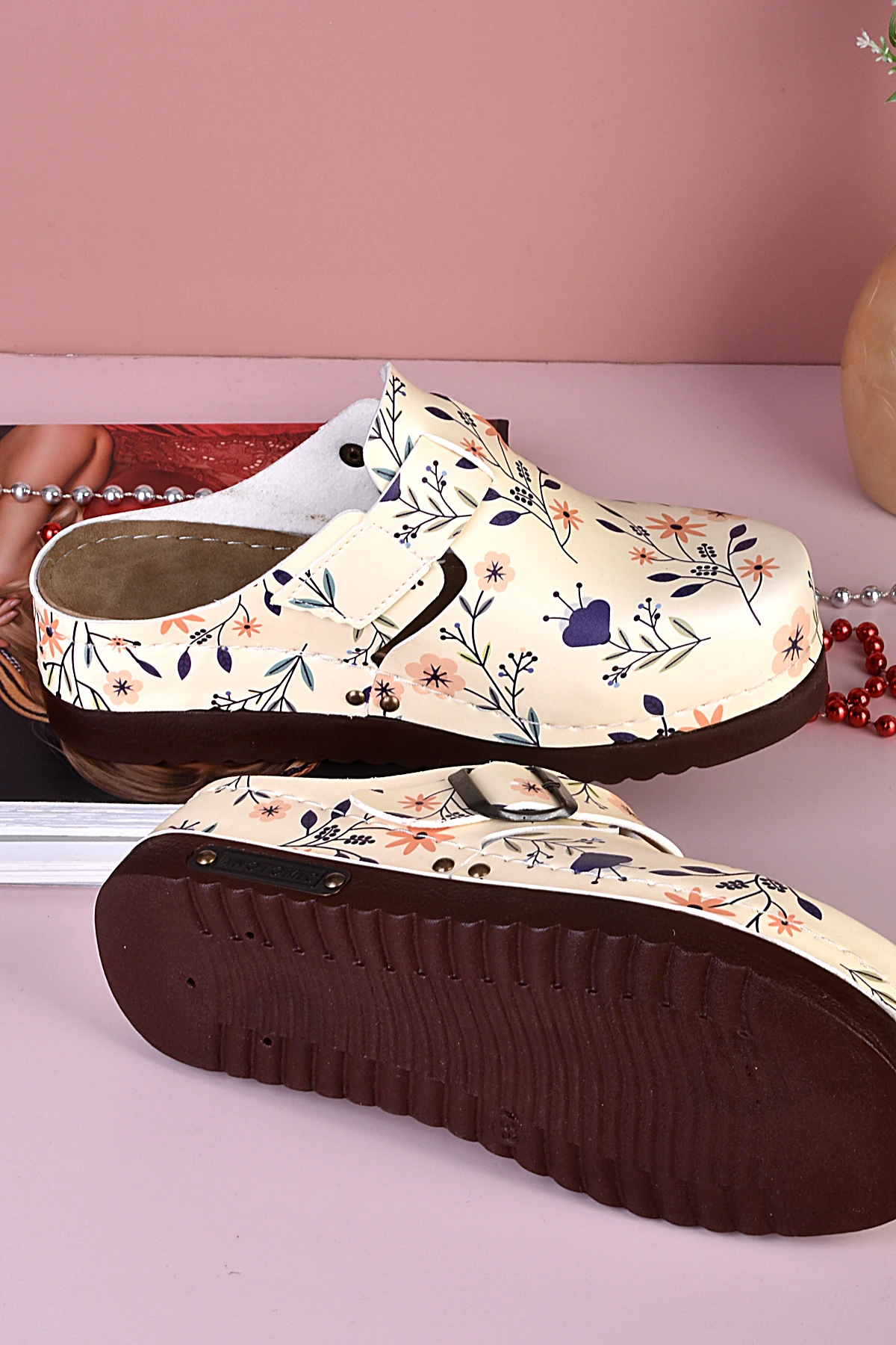 3064 Mavi Çiçek Desen Anatomik Terlik