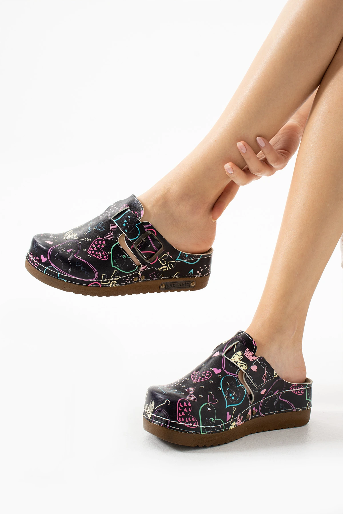 3082 Neon Şekiller Baskılı Delikli Anatomik Terlik