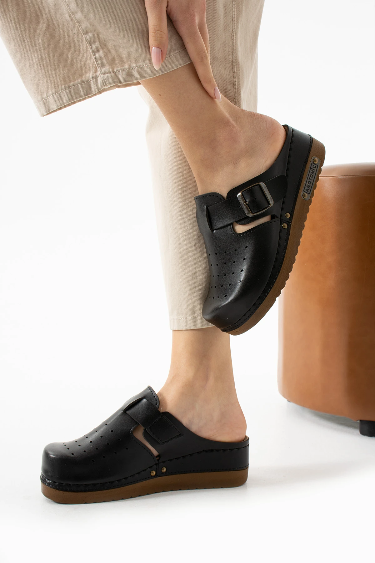 3087 Siyah Düz Renk Delikli Anatomik Terlik