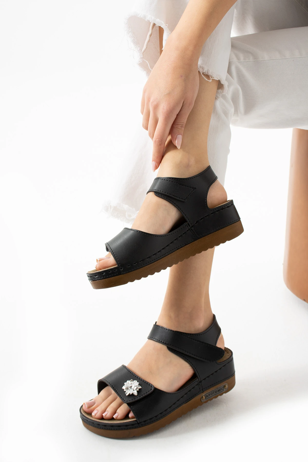 506 Siyah Düz Renk Cırtlı Topuklu Terlik