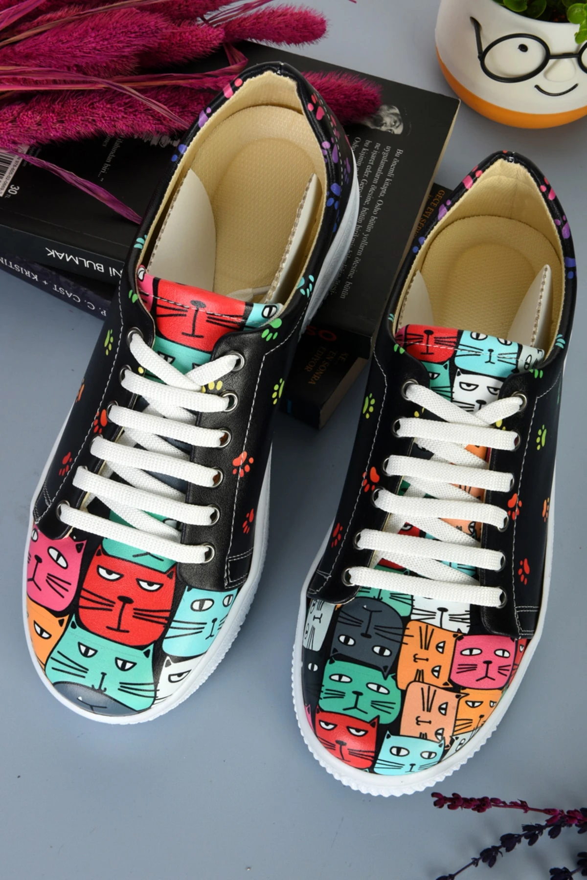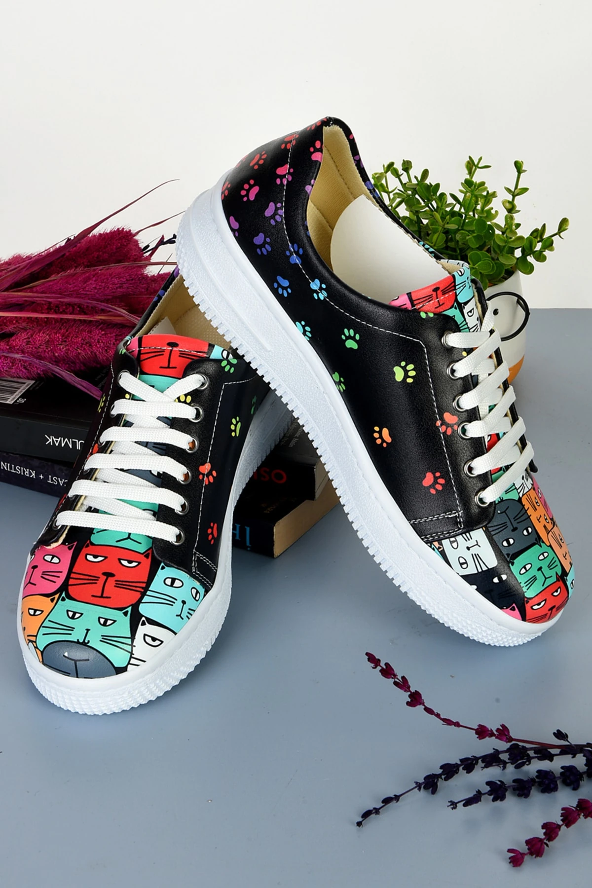 6050 Renkli Kedi Desen Özel Tasarım Kadın Sneakers