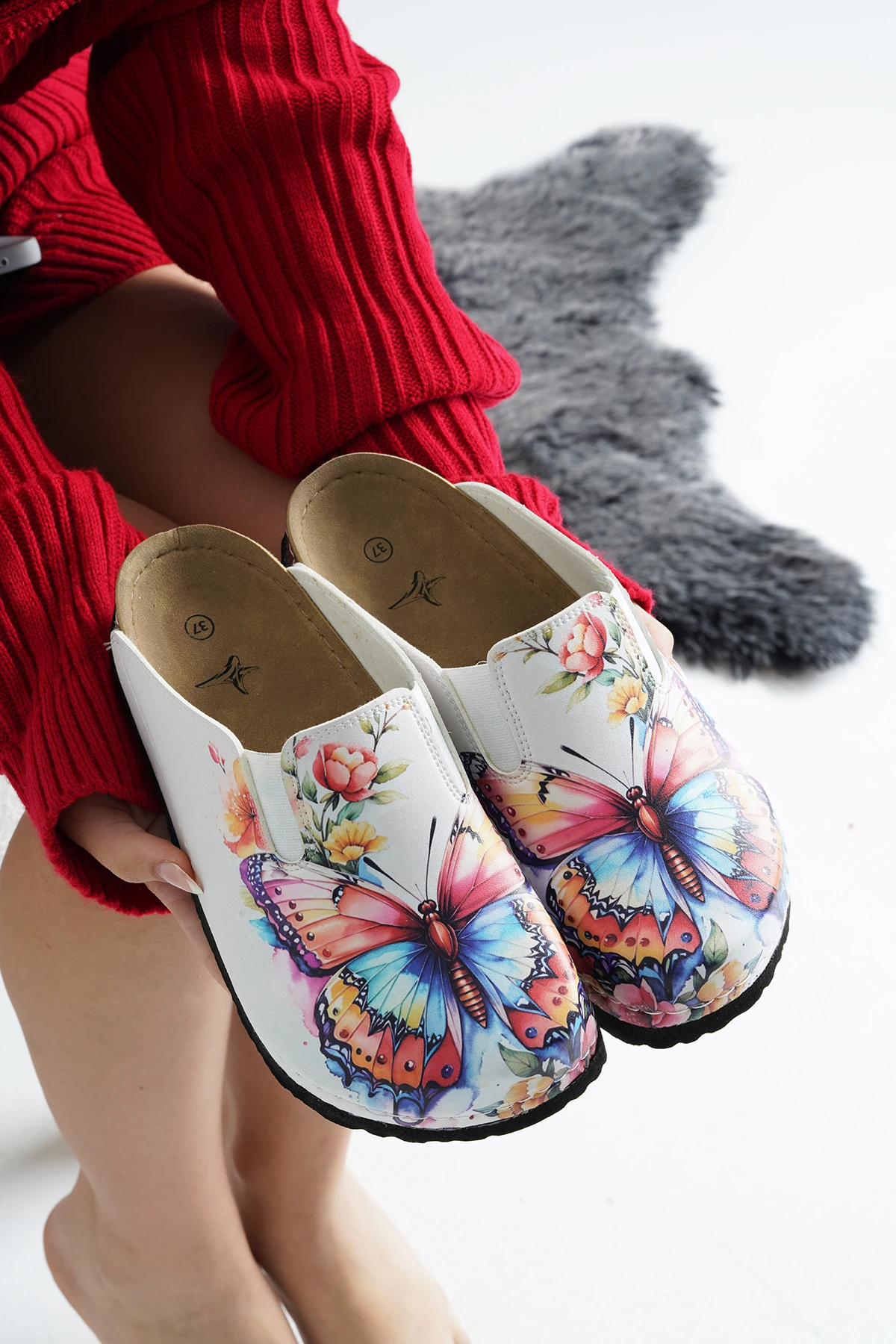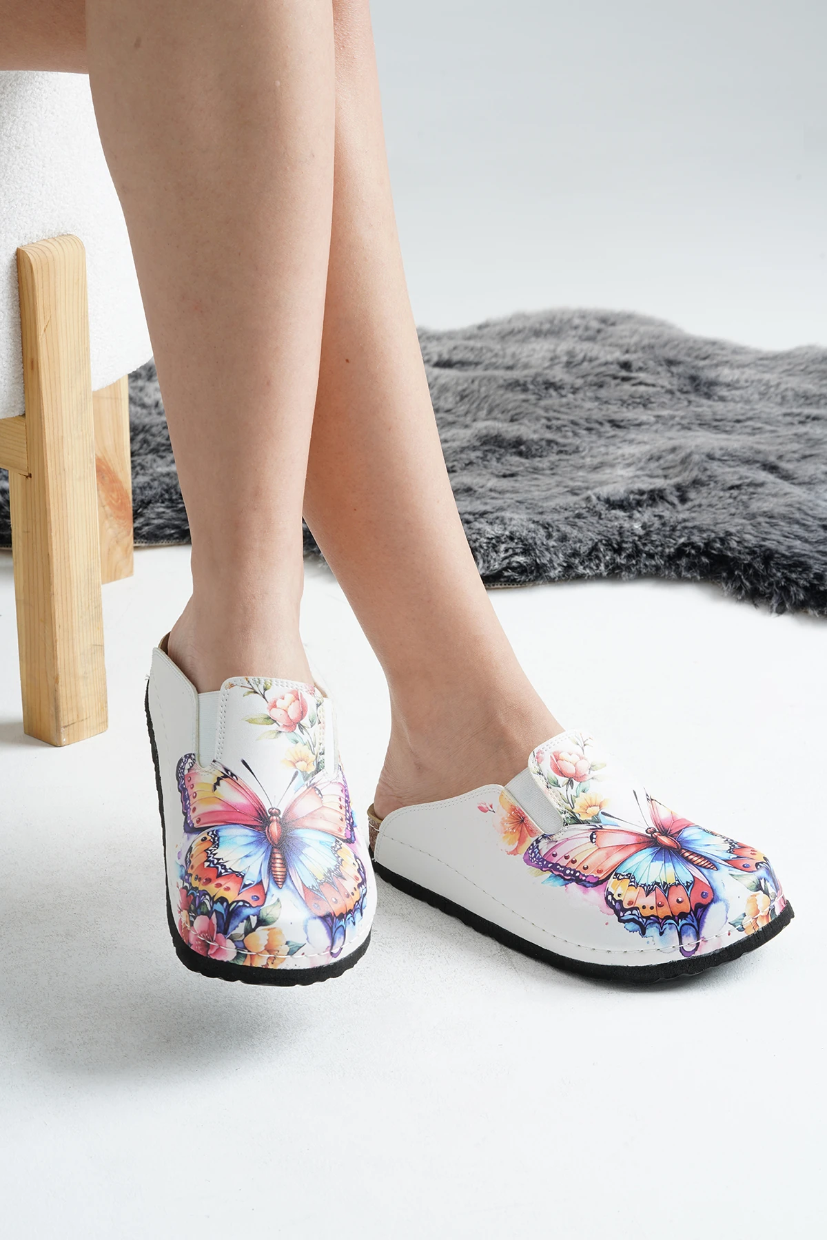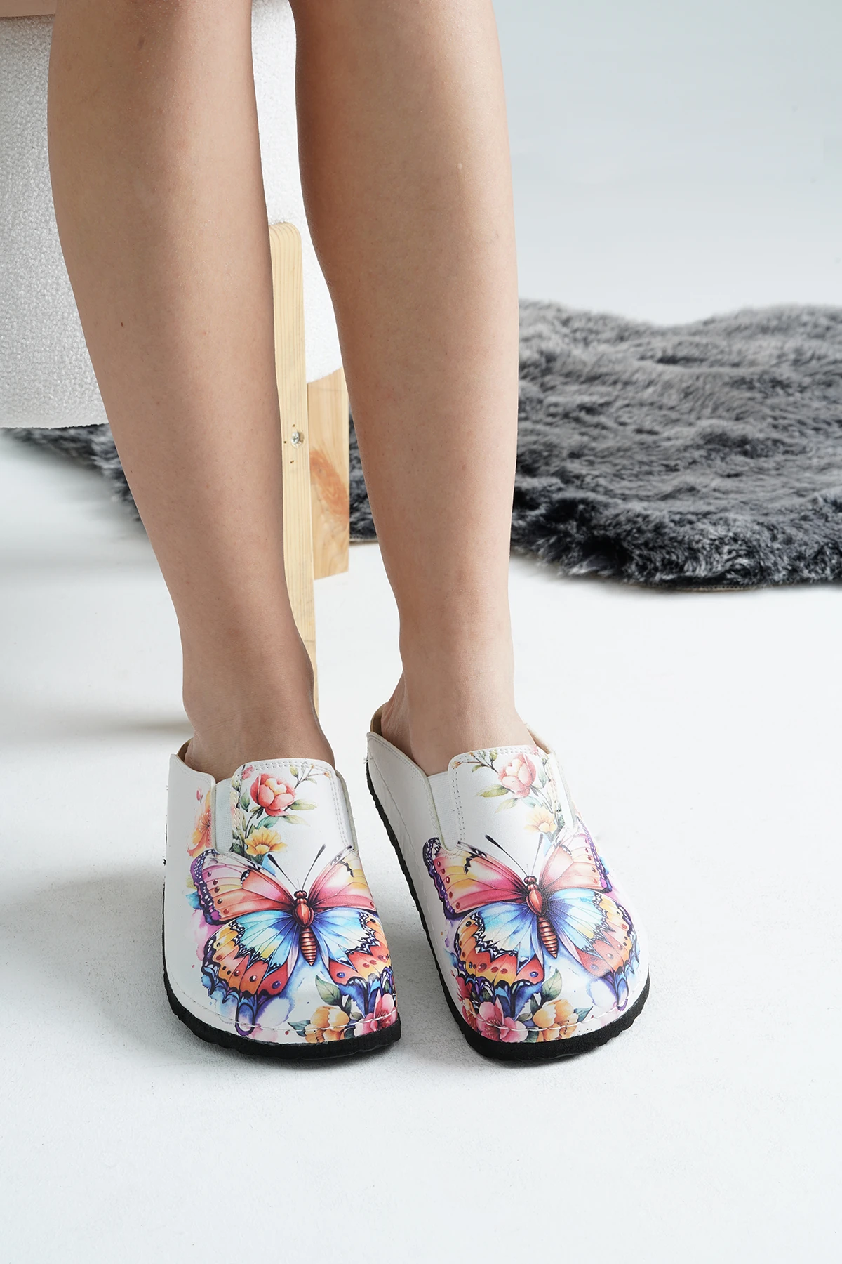 Renkli kelebek baskılı sabo terlik, estetik ve konforu bir arada sunarak, günlük yaşamda vazgeçilmez bir parça haline gelmektedir.