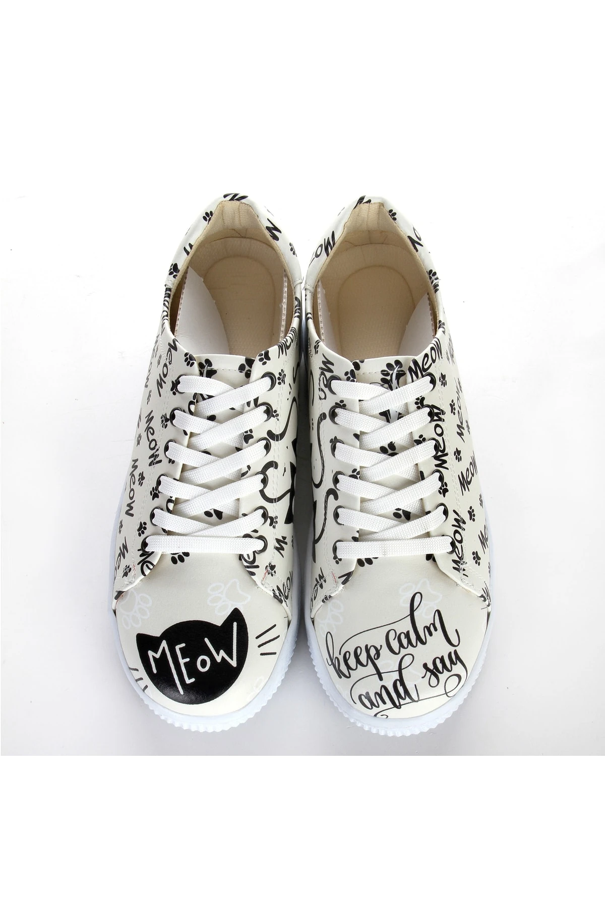7377 Meow Yazılı Beyaz Sneakers