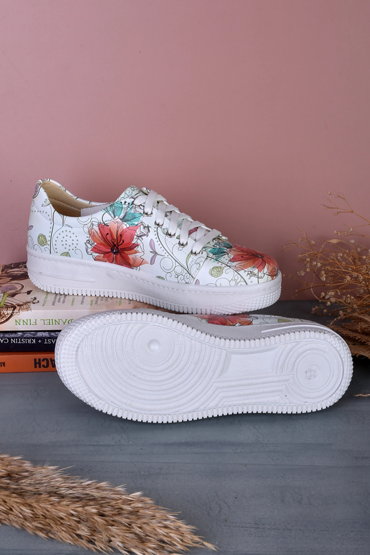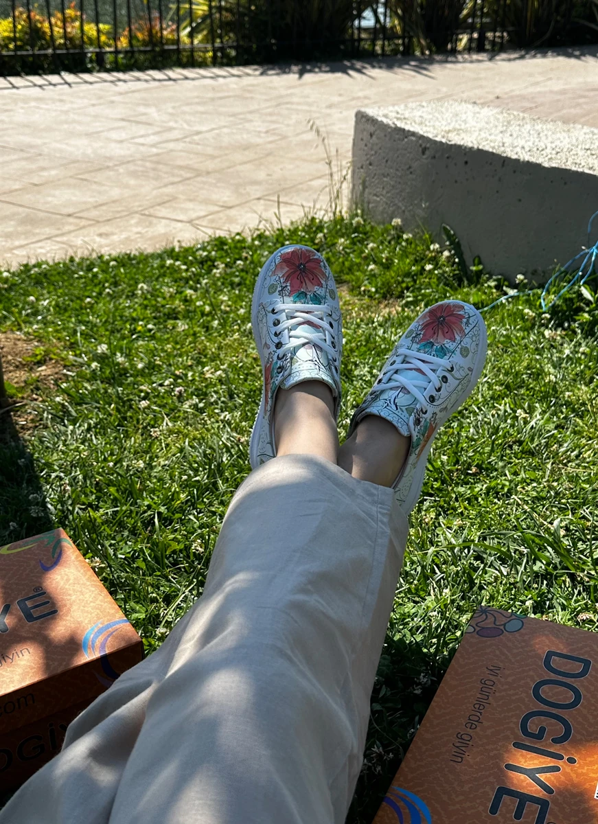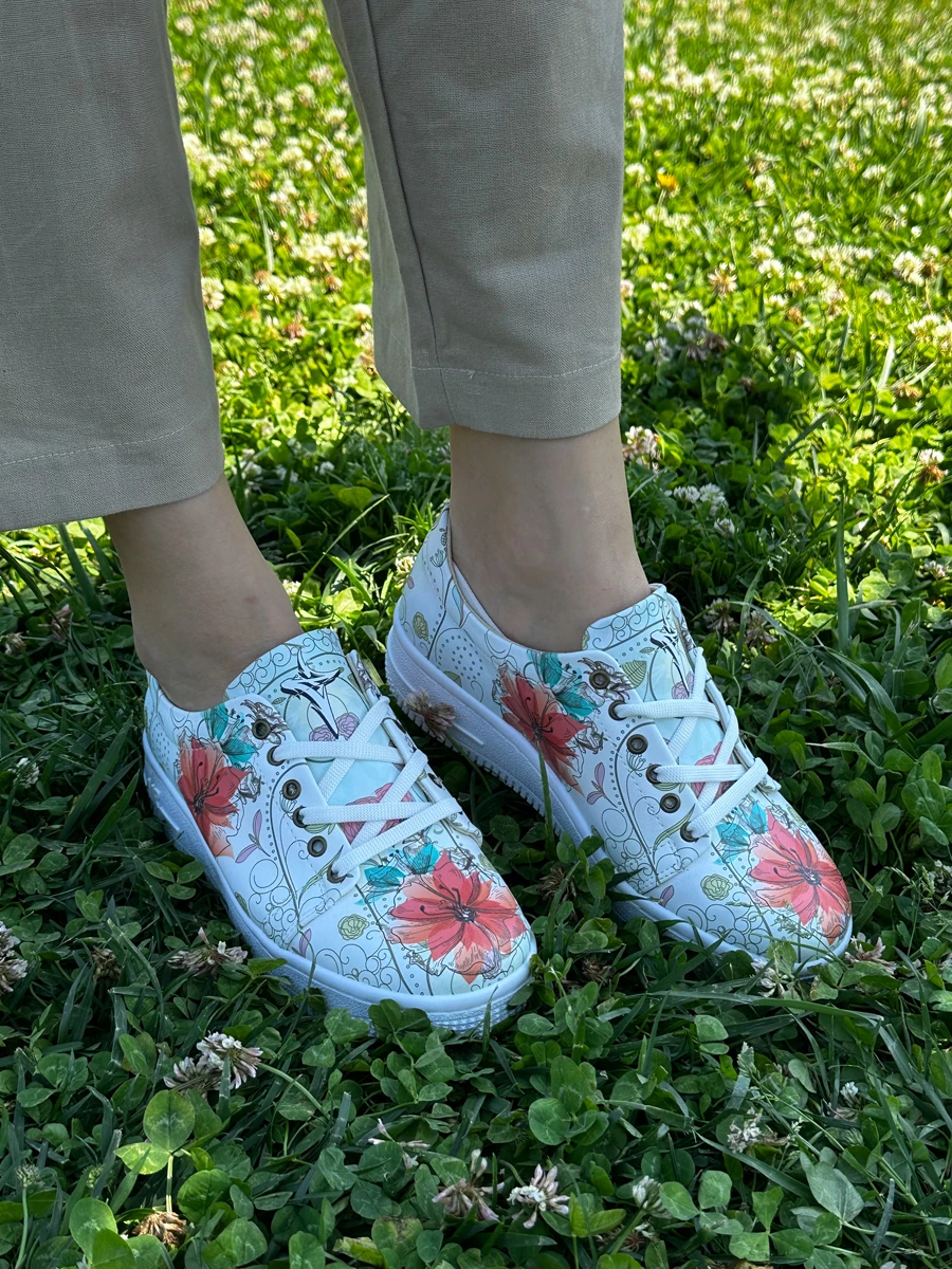 8030 Kırmızı Çiçek Baskılı Sneakers