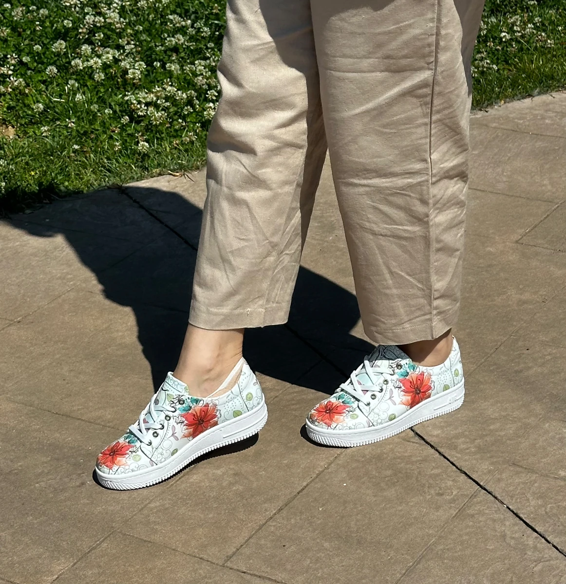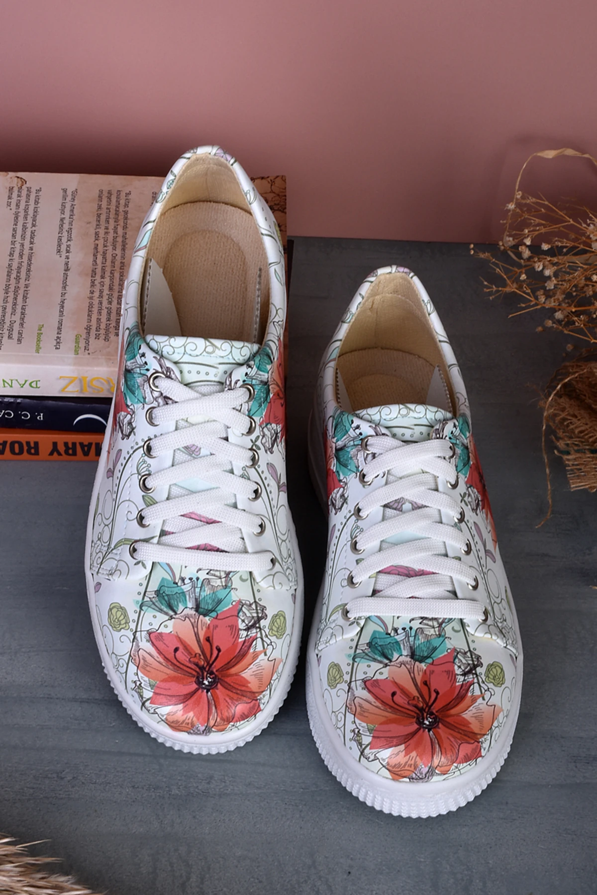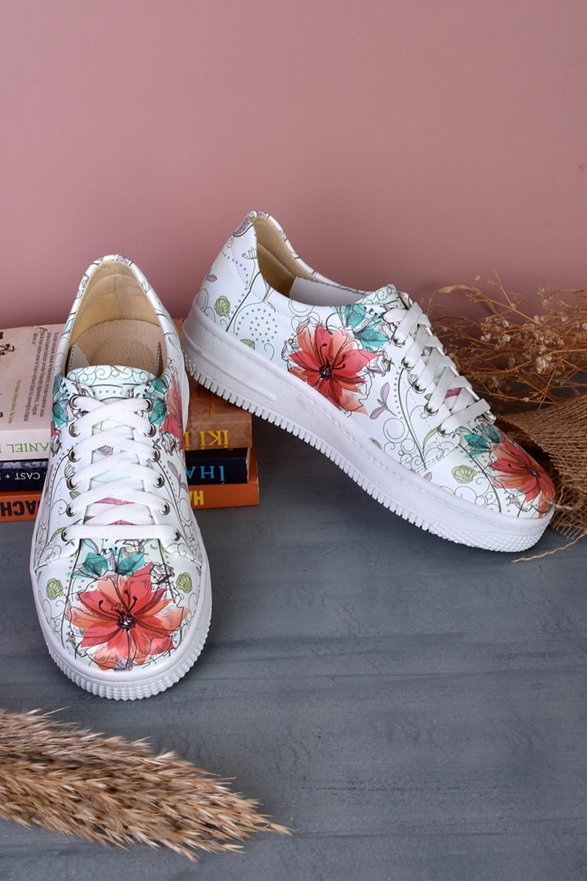 8030 Kırmızı Çiçek Baskılı Sneakers
