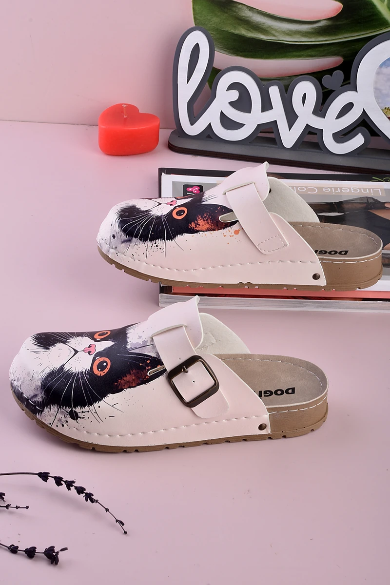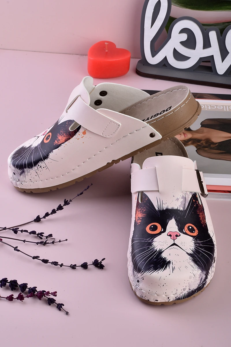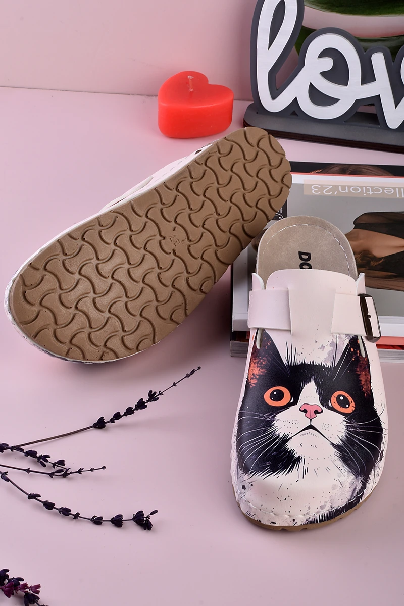 8082 Korkmuş Kedi Baskılı Konfort Sabo Terlik