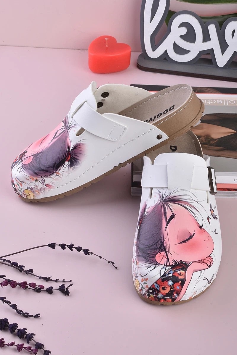 8087 Tatlı Kız Baskılı Konfort Sabo Terlik