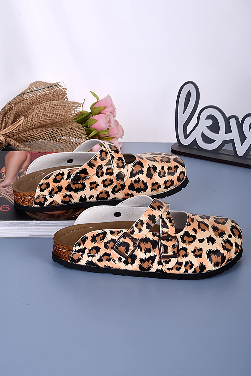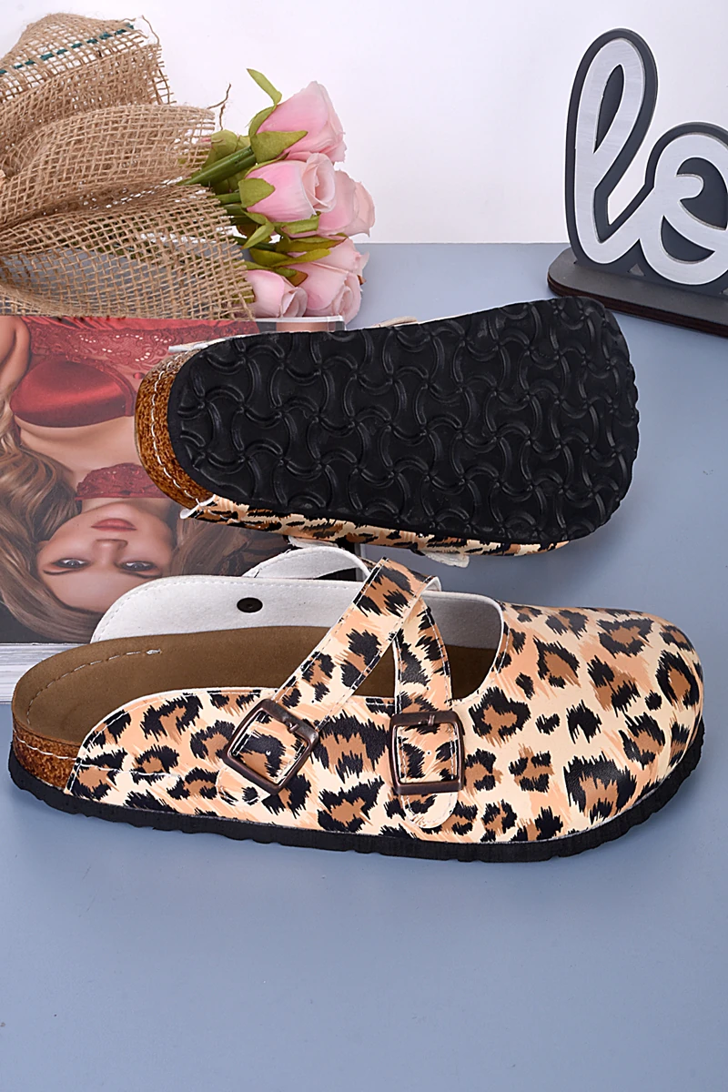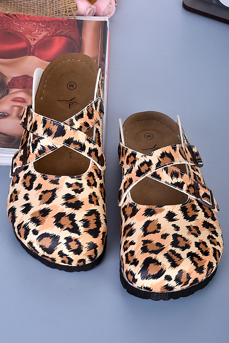 8103 Leopar Desenli Çapraz Sabo Terlik
