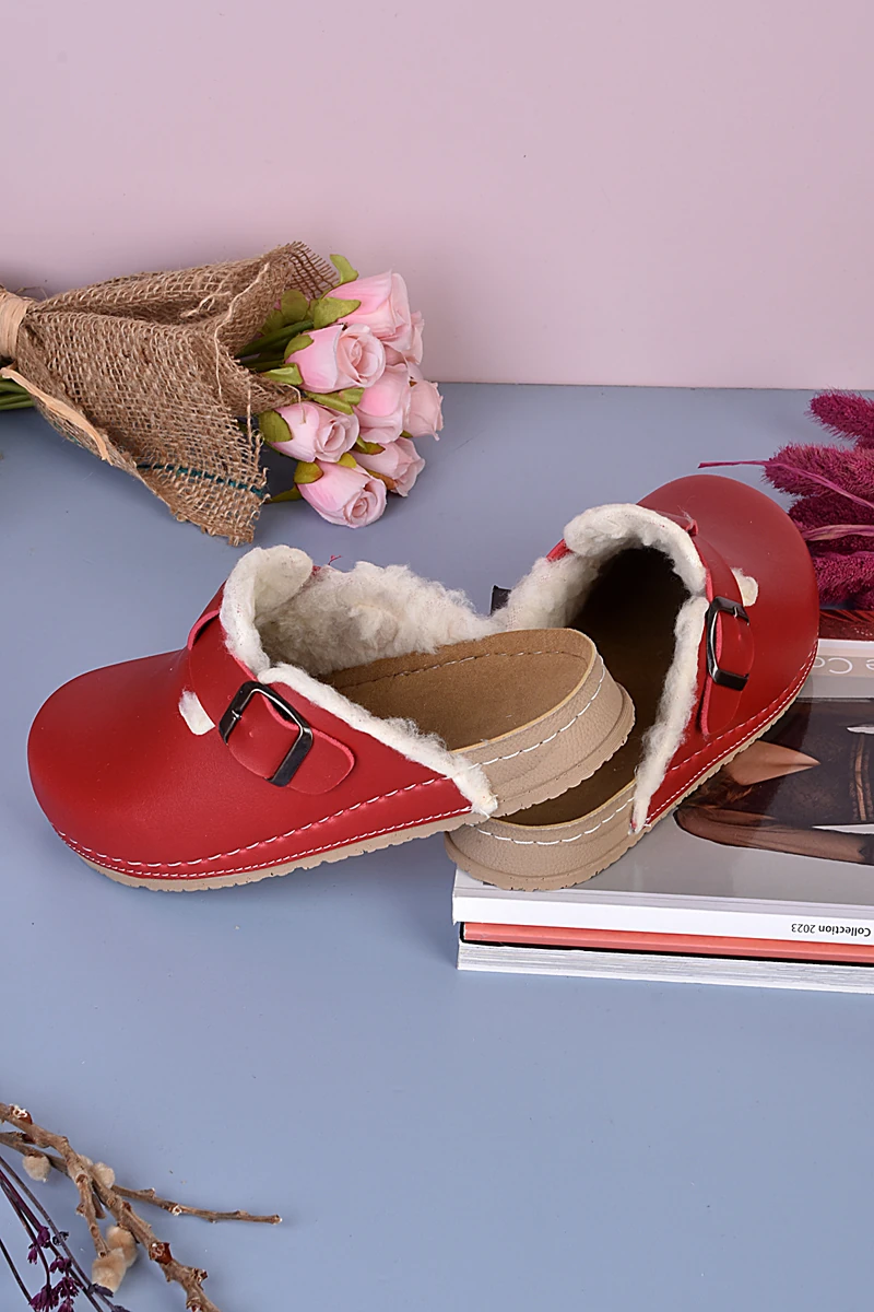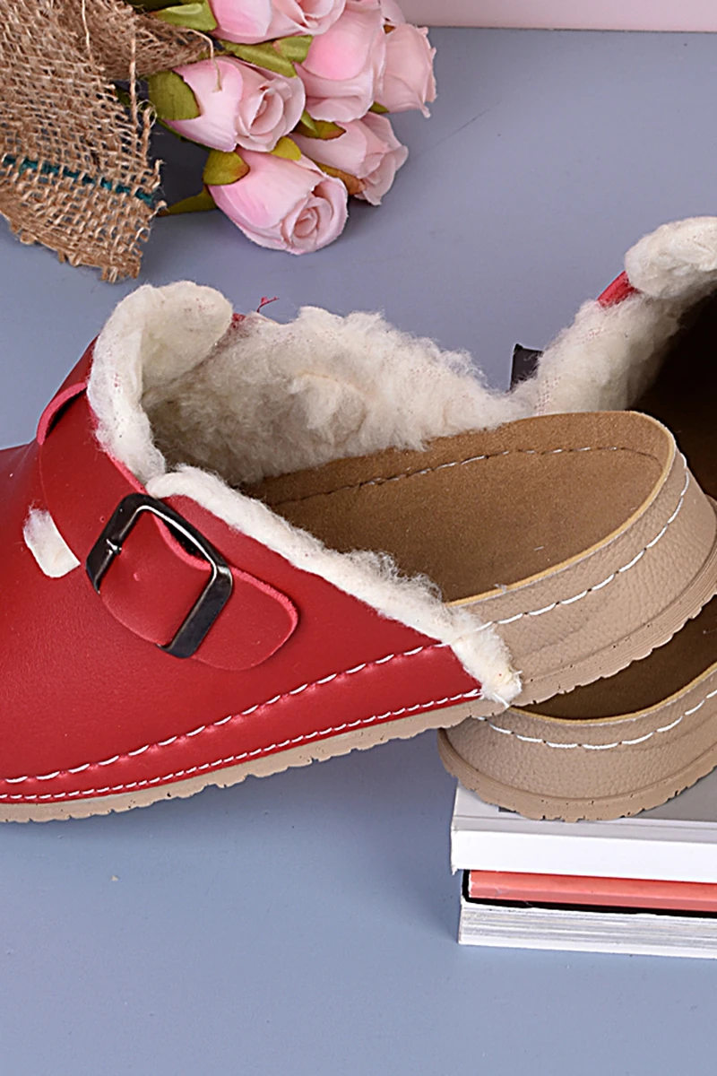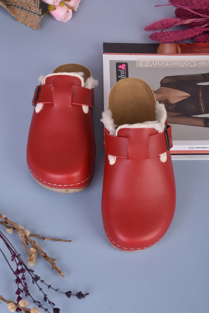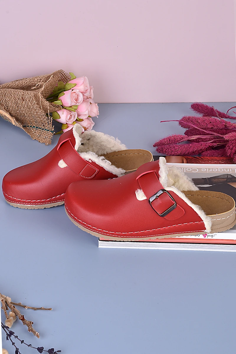 8110 Kırmızı İçi Tüylü Kışlık Konfort Terlik