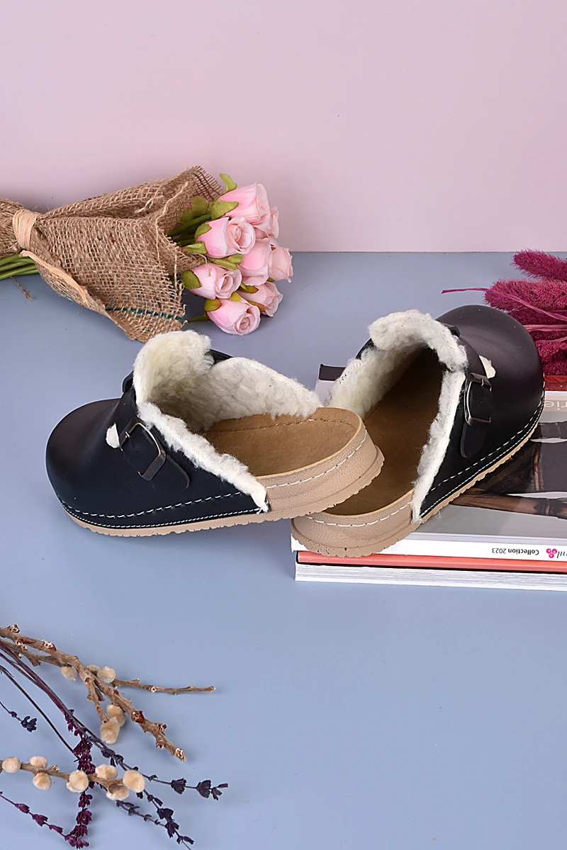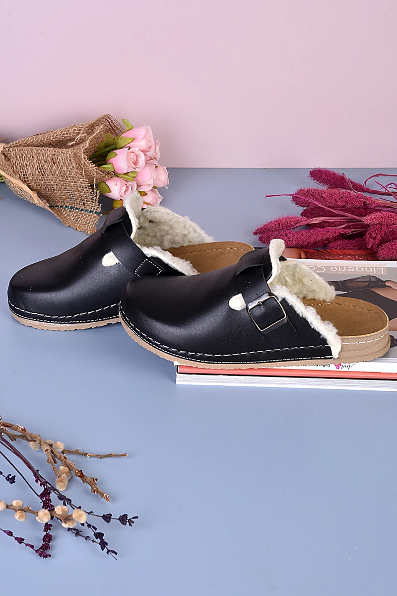 8112 Siyah İçi Tüylü Kışlık Konfort Terlik