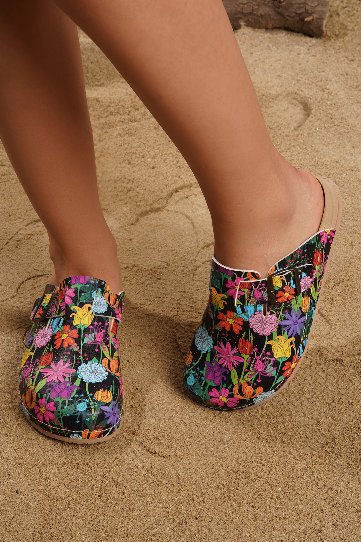 Günlük kullanım için ideal olan bu konfort sabo terlik, evde, bahçede veya plajda rahatlıkla tercih edilebilir. Şıklığı ve konforu bir arada sunan 8124 Renkli Çiçek Baskılı Konfort Terlik, her adımda özgüveninizi artırır.