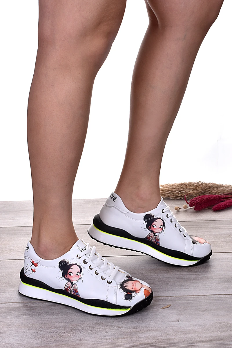 9006 Tatlı Kızlar Baskılı Evosten Spor Ayakkabı