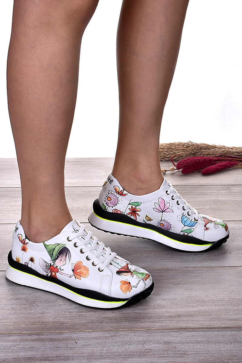 9007 Renkli Çiçekler Baskılı Evosten Spor Ayakkabı
