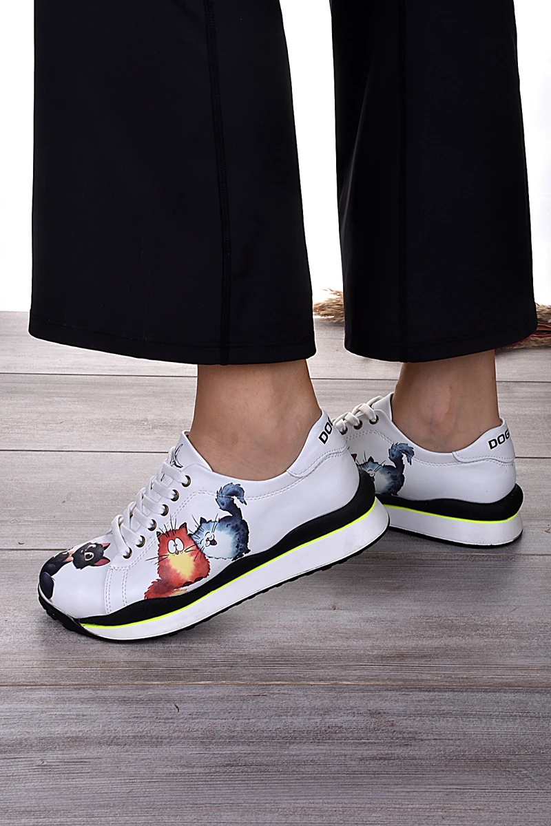 9017 Siyah Kediler Baskılı Evosten Spor Ayakkabı